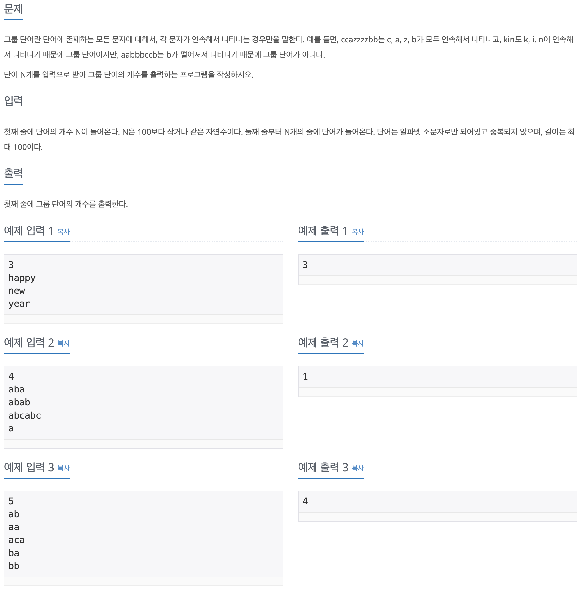 알파벳이 순서대로 다 걸러졌는데 word에 알파벳이 남았다면 앞에 나왔던 단어이므로, len(i)가 0인지 아닌지를 구분해 카운트를 세면 된다.