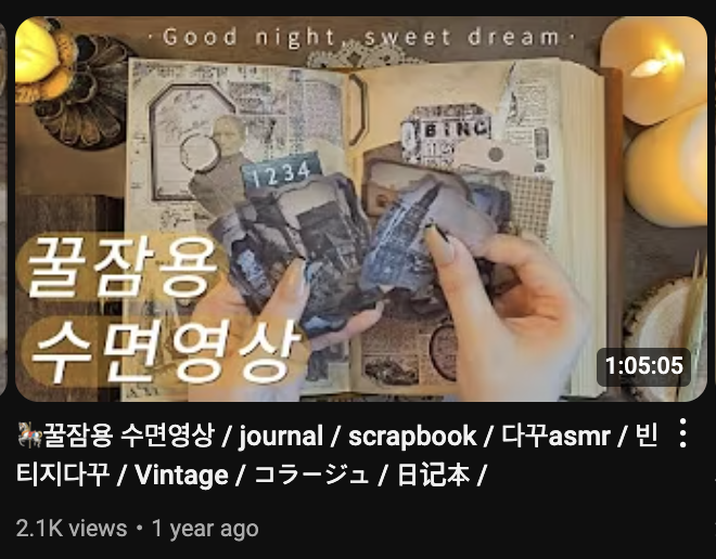 - 무려 '꿀잠용 수면영상'이 존재하는 다이어리 꾸미기 채널.